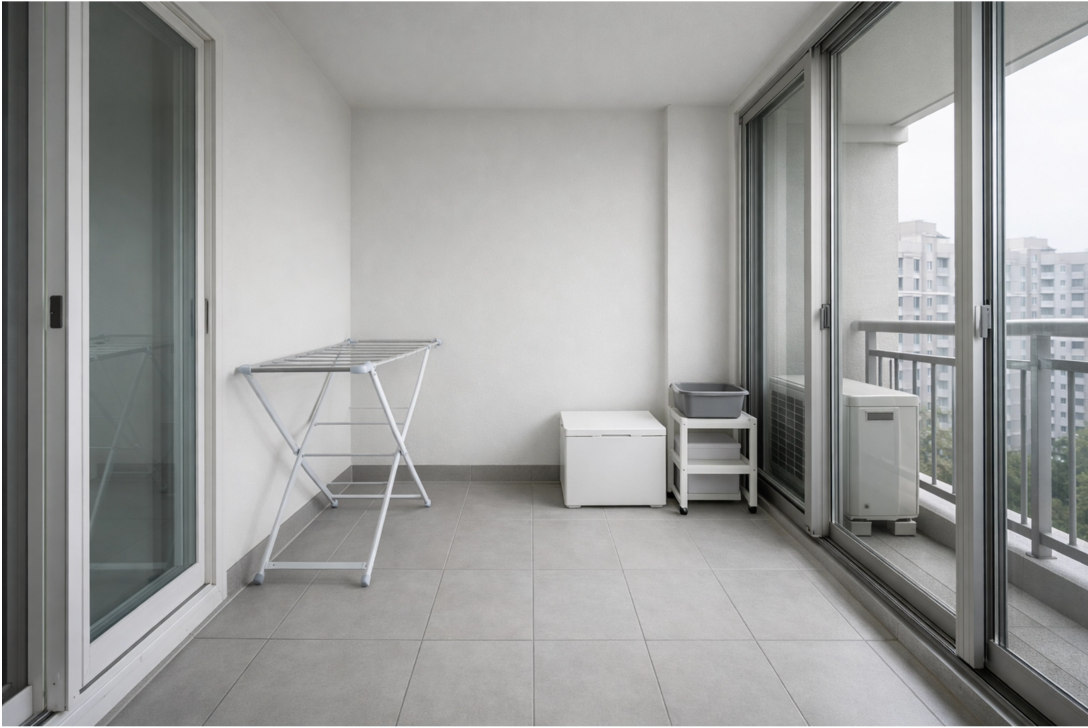 베란다 방수 보수, 현관·베란다 타일 교체, 배수구 정비, 방충망 교체 작업을 담당합니다.